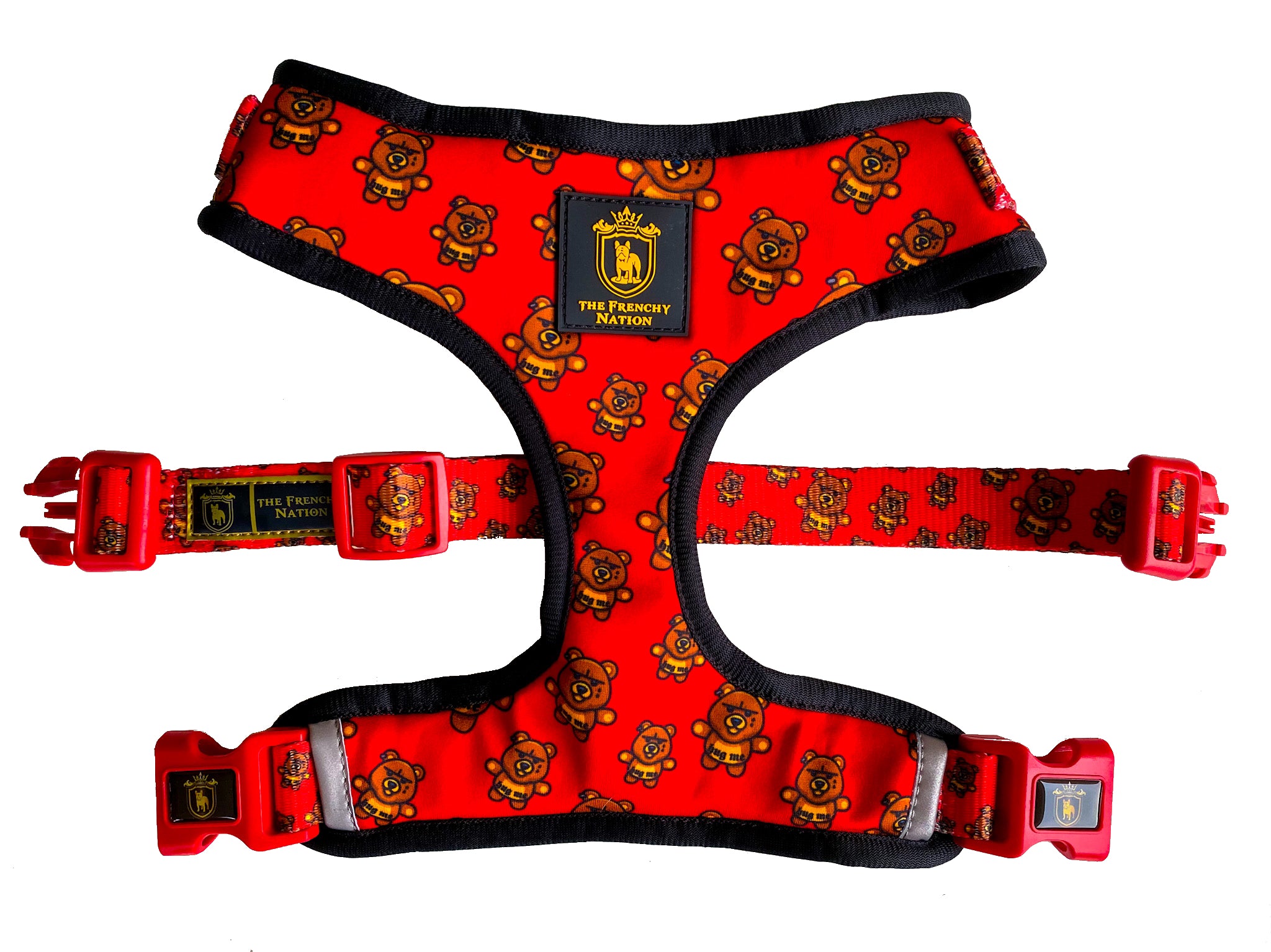 WIGGLEBUTT-FRIENDLY STRAPS adjust perfectly to accommodate those wide Frenchy chests and wiggly Frenchy butts!