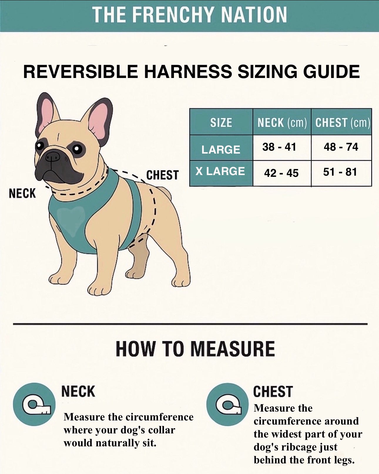 x-large is suitable for larger adult frenchies & british / Aussie bulldog pups
